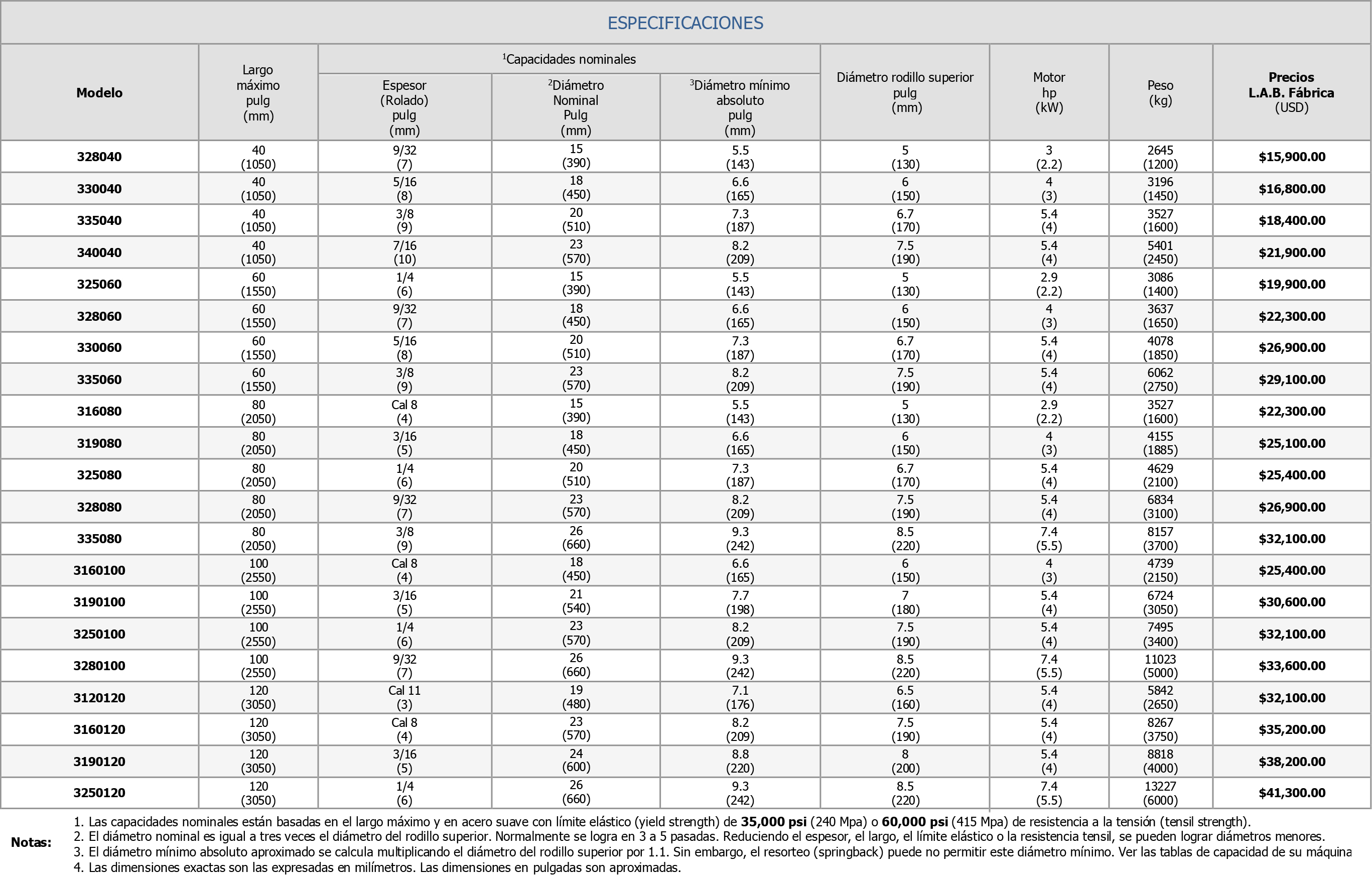 Roladoras de Lámina y Placa de 3 Rodillos